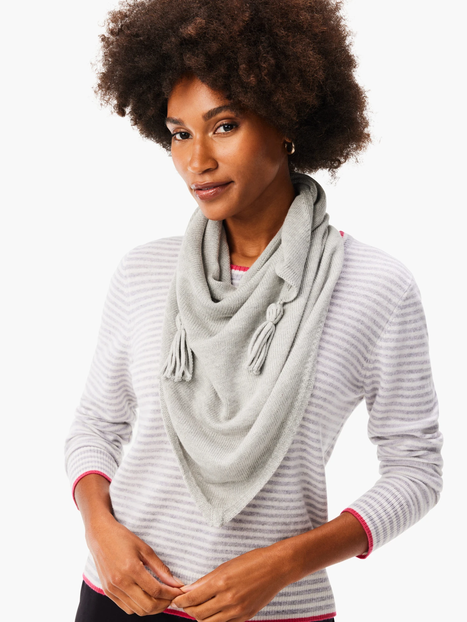 Step out into a winter wonderland in style in your next favorite scarf. Featuring knit tassels that add texture and movement (not to mention unique style and effortless sophistication) to every step you take when out in the cold, this cold weather mainstay is more than just an add-on, it’s a winter wonder. Mindfully Made from “no waste” knitwear that all but eliminates textile waste.