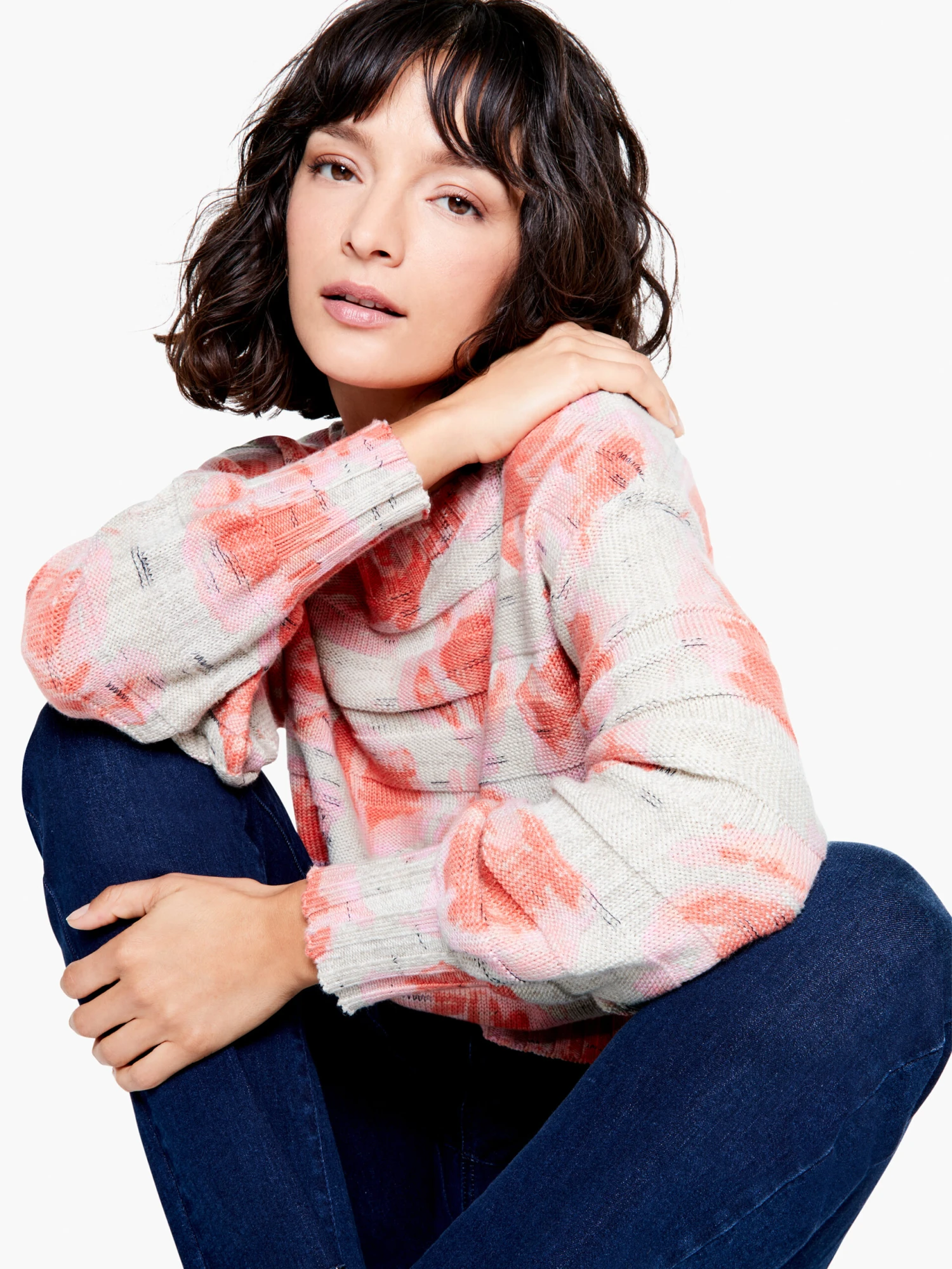 A knit print that evokes both sunsets and days in the garden, this comfortable pullover is full of hidden details that complement the bright design: bishop sleeves, a ribbed boatneck collar and comfy bracelet sleeves. In a midweight construction that’s designed to sit at the hip. Mindfully Made from knitwear that’s fully fashioned to reduce textile waste.